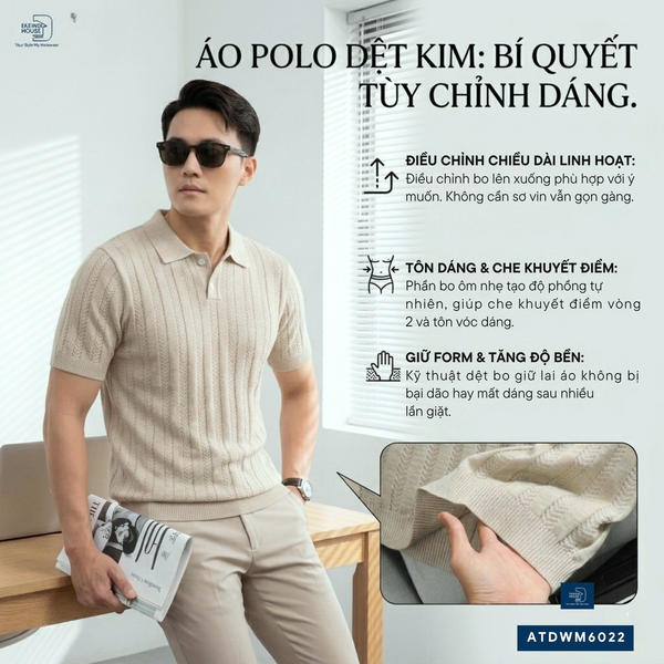 Dòng áo polo dệt kim nam ATDWM6022 là lựa chọn lý tưởng cho quý ông theo đuổi phong cách gọn gàng, tinh tế nhưng vẫn ưu tiên sự thoải mái khi mặc hằng ngày.