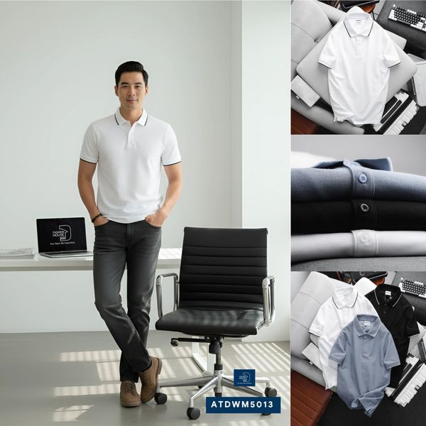 👉 Gợi ý outfit đi làm: Áo polo trắng cổ viền đen + quần xám đậm + giày tây nâu. Thanh lịch, chuyên nghiệp nhưng vẫn năng động trong mọi hoàn cảnh.